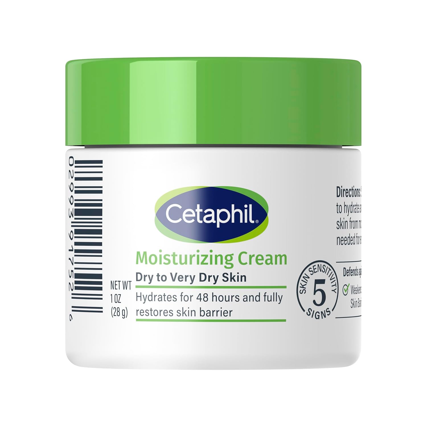 Care for your dry to very dry skin with CETAPHIL Moisturizing Cream, a non-greasy, moisture rich cream for the whole body. Enriched with sweet almond oil and vitamin E, it immediately comforts and instantly hydrates dry, sensitive skin. Formulated with a new blend of key ingredients: hydrating glycerin, panthenol (vitamin B5) to hydrate, soothe and preserve the skin barrier, and niacinamide (vitamin B3) to help smooth skin texture and retain skin moisture barrier. For long lasting hydration, this extra strength face & body moisturizer binds water to the skin to deeply replenish the skins moisture and prevent moisture loss, hydrating and soothing skins dryness for 48 hours and completely restoring the skins moisture barrier in one week. Ideal for very dry areas of skin on the hands, feet, elbows and knees, leaving your skin feeling soft, smooth and nourished. This fragrance free, paraben free, and sulfate free formula will not clog pores and is clinically tested for even the most gentle skin. Effectively defends against 5 signs of skin sensitivity.